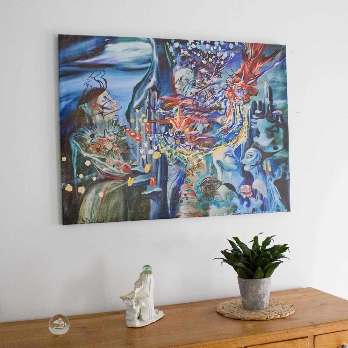 Hilda Garman met ses toiles peintes a l’huile a disposition du public, avec des impressions sur toile de haute qualité.