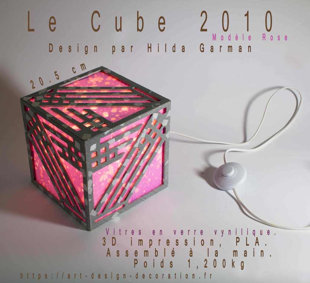 Frais de livraison inclus ! Fonctionne sur 220V. C’est une lampe de table ou de sol avec un aspect strié. Répliquée en impression 3D, en PLA. Assemblée à la main. Avec une épaisseur de paroi de 0,4 cm et une taille de 20,5 x 20, 5 x 20,5 cm. Poids 1 200 kg. Les fenêtres sont en verre vinyle, transparent avec renfort en papier décoratif que j’ai créé. Il est facile de changer l’ampoule par le bas qui convient à un culot à vis E27. Cette lampe convient aux bureaux, salons, chambres et avec un look industriel plutôt moderne. D’autres variantes de ce design sont en cours de réalisation avec des couleurs et des textures variées. Elle s’appelle THE CUBE 2010 car le design que j’ai créé en 2010 avait des couleurs argentées avec de la dorure et était découpé à la main. Mon entreprise développe également d’autres types de lampes qui seront bientôt commercialisées ou rééditées.