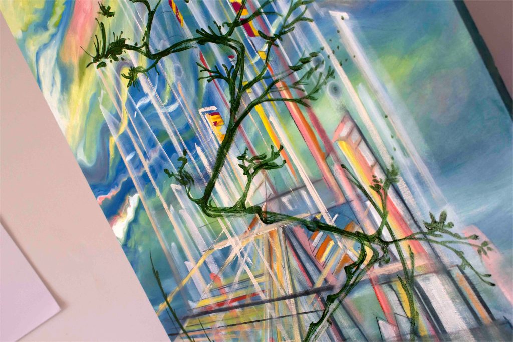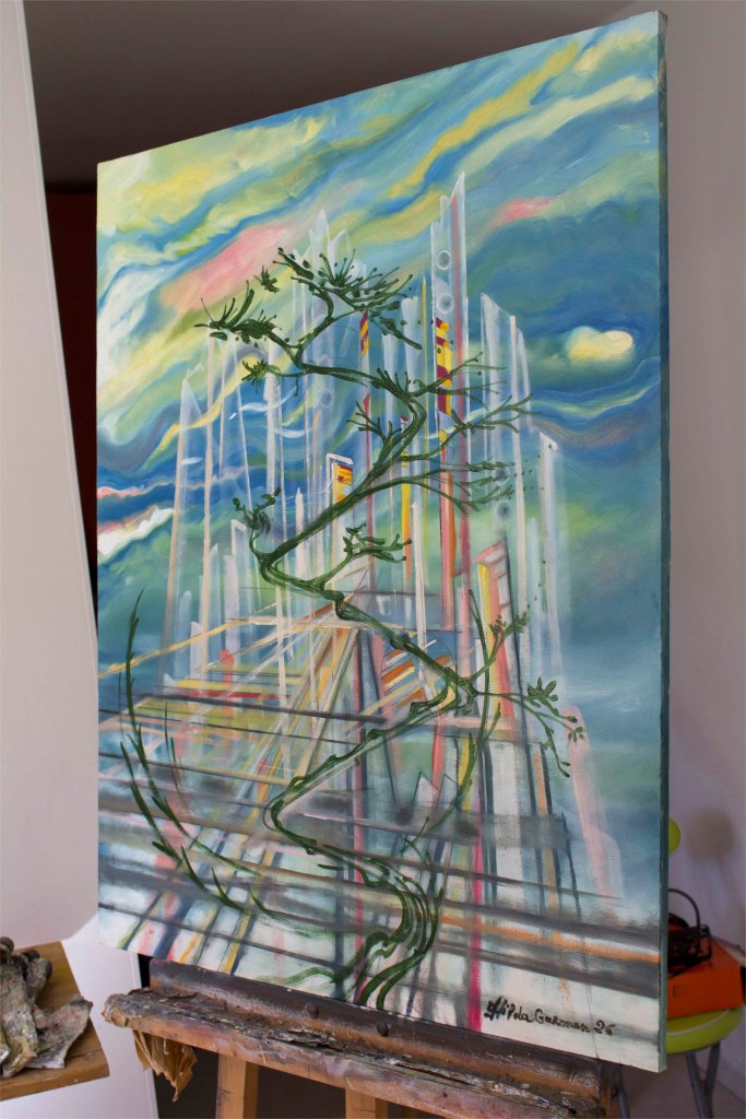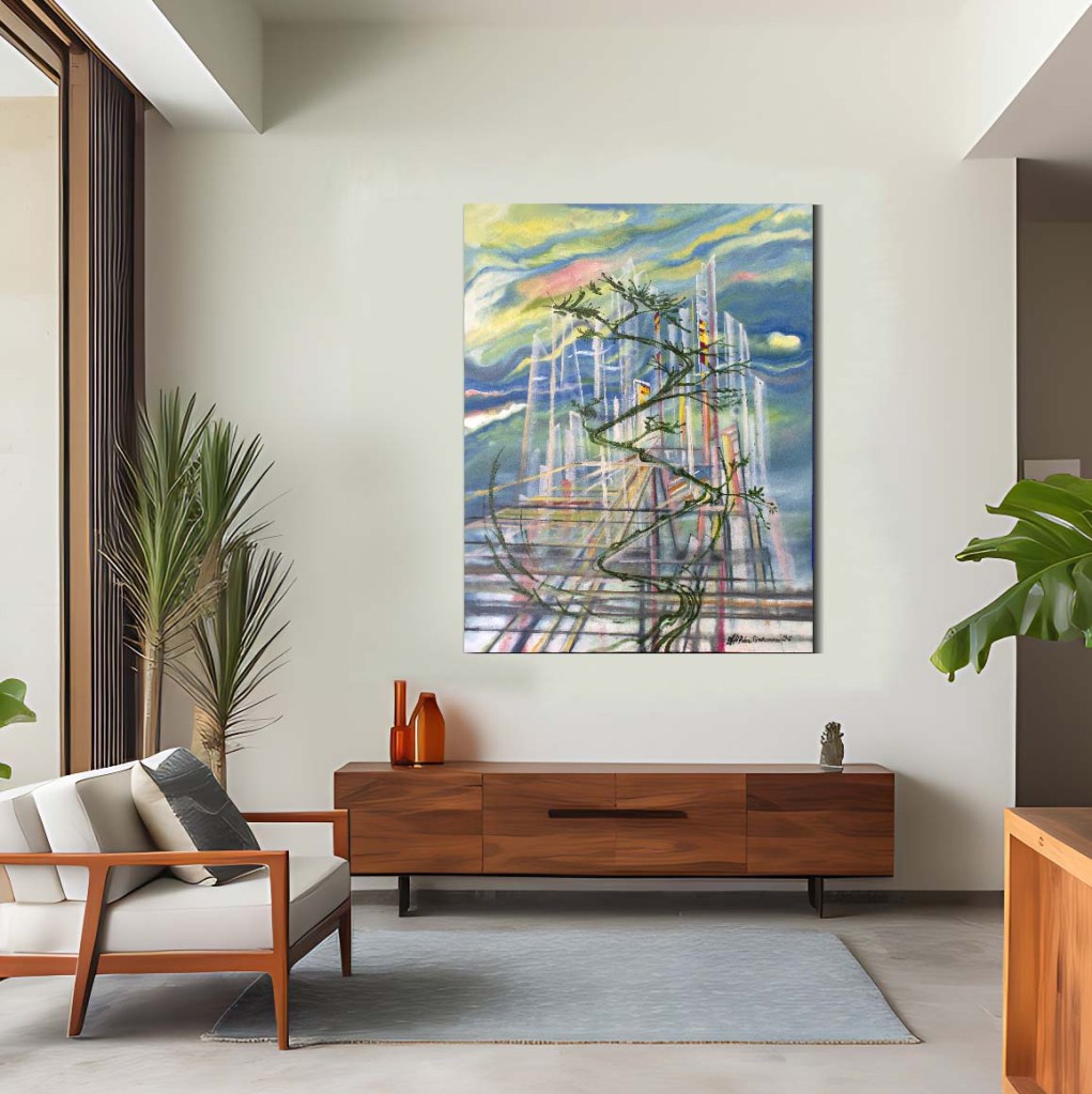 Un agencement dynamique de lignes et de couleurs pastel merveilleuses, parfaites pour chez vous, fera fuir les émotions moroses ! J’exprime ici l’optimisme, j’évoque l’eau, le ciel, un ponton sur un port de la méditerranée qui est symbolisé par des lignes architecturales d’un arbre d’un vert olive sombre et aussi, les cimes des voiliers blancs. Ici vous pouvez voir plus de détails et acheter une reprographie sur toile sur châssis de haute qualité avec des encres anti-UVS en format unique de 80×60 cm ! Si vous êtes intéressés par l’original, vous pouvez me contacter au 06 28 35 97 61. Pour des commandes pour des décors aussi !